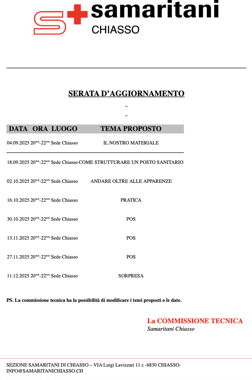 Presenza sanitaria qualificata durante eventi sportivi, culturali e manifestazioni civiche nel territorio di Chiasso e dintorni.